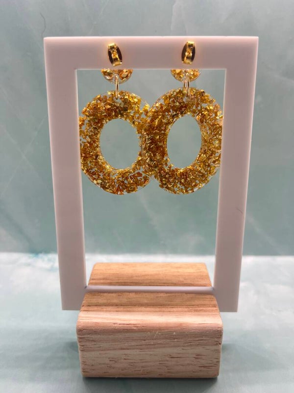 Morgane est une paire de boucles d'oreilles réalisée à la main et composée de résine et de brisures de verre concassé et coloré.